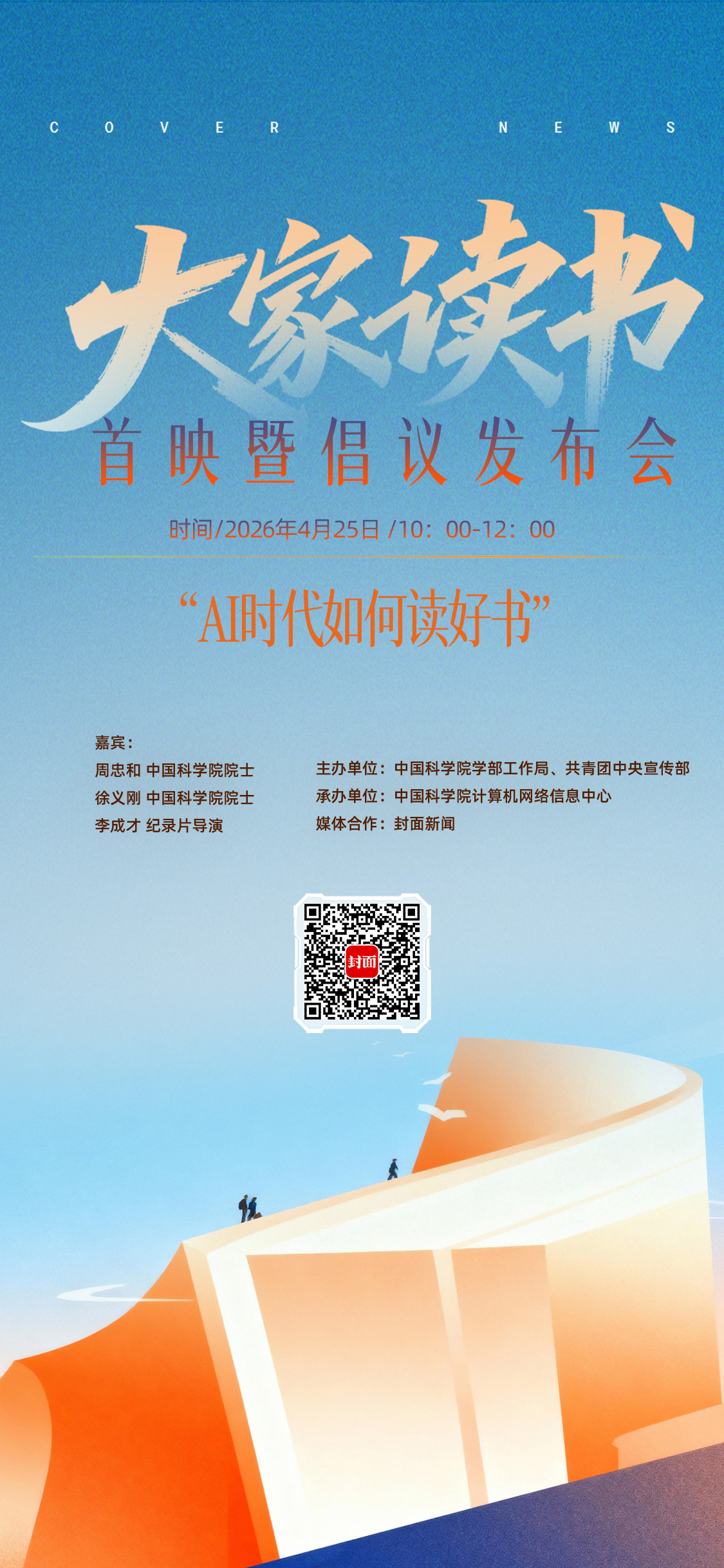 世界读书日活动期间,4月25日10:00,封面新闻将联合中国科学院,推出《大家读书》直播,一起和大家们分享读书的乐趣。
